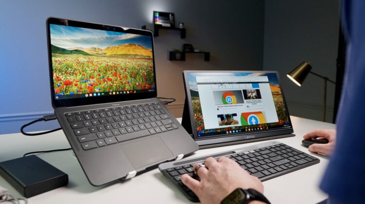 That means my setup is a bit different than most with my Chromebook situated under the second screen, but that doesn’t mean I don’t still enjoy having my Chromebook over to the side while I use a peripheral keyboard and mouse when I can get away with it. For most people, this is the better setup as it allows you to put the wear and tear on your accessories instead of beating up the built-in keyboard and trackpad on a daily basis.