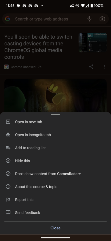 I just discovered something cool though – there’s a new “Add to reading list” option in the Google Discover feed! The catch is that it’s not in the standard Discover feed, but rather on the new tab page for Chrome on Android. Google added this content here to help pad out the NTP and give users more information to explore, so if you prefer to read articles through Chrome instead of swiping left on your phone’s home screen, then you will likely also now see this new reading list option (pictured below!)