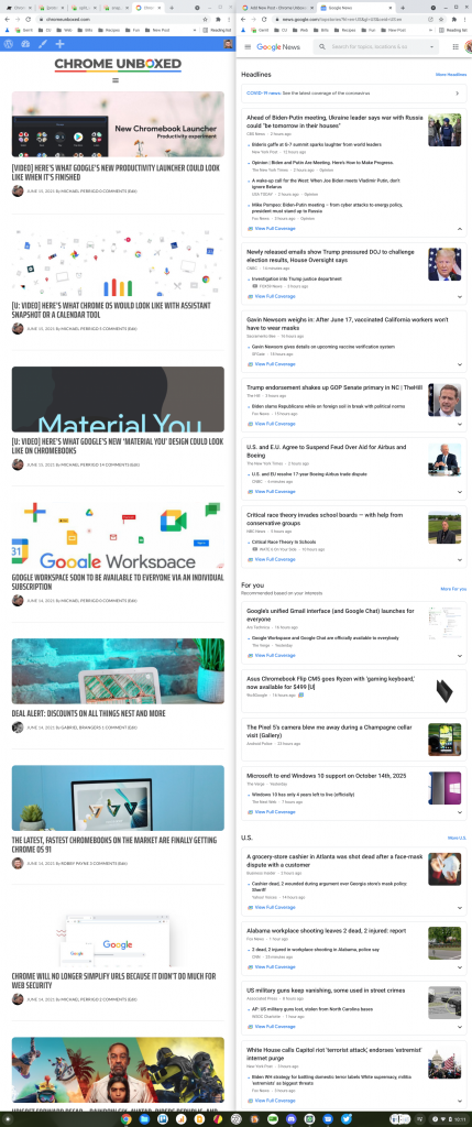 Discovered by Android Police, there is a change in the works to make using vertical displays a much better overall experience. Assuming you resonate a bit with what I’ve said above or that you are already a user of vertical screen layouts, you will likely run into a multitasking issue that has been around on Chromebooks for a very long time. When in landscape orientation, snapping open windows is a handy way to organize your on-screen info. There are quick ways to do it, too, including a simple drag of the window to the desired side of the screen, long-clicking on the expand button between the minimize and close buttons on the top-right of your window, or even with a keyboard command ( ALT + [ or ] ).