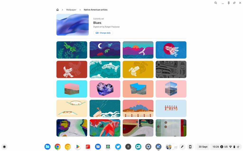In the past, we’ve seen things like Black History Month and themes by Latino artists, but soon, you’ll see a “Native American artists” collection appear in the personalization app. There’s not much information on these yet, and I haven’t been able to place them into our famous ChromeOS Wallpapers Google Photos shared album, (which I’ll certainly do once we get our hands on them) but as soon as Google drops an official announcement, we’ll cover it here to credit these artists for their hard work.