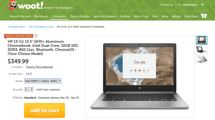 +Brent Sullivan has unearthed a massive discount on refurbished HP Chromebook 13 G1’s and 3 models are on offer.