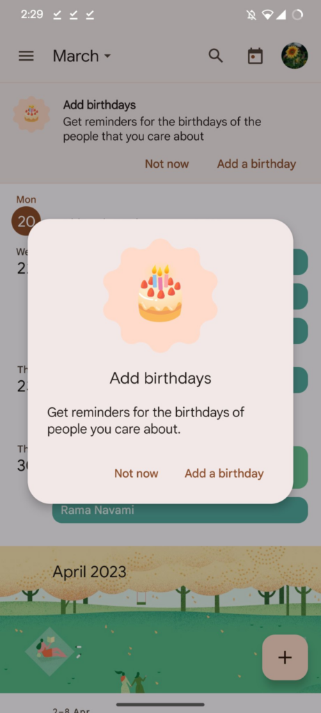 It looks like Google Calendar may soon roll out a new feature that allows you to manually add birthdays with notifications on Android. This was first spotted by a user on Twitter by the name of @AssembleDebug, who showed off an early-look video of the step-by-step process.