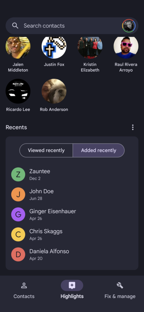 While this made sense, it’s clear that separating them into their own special section adds attention-grabbing elements. Additionally, the Highlights tab has a new “Viewed recently” and “Added recently” sub-tab switcher. Jumping between each of these will show you additional highlights and not simply the people you’ve placed a star on for special focus.