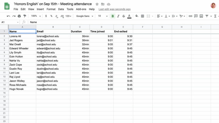Organizers of G Suite Enterprise for Education meetings will now receive an attendance report via email once the meeting is over. Attendance reports will be generated for web or mobile meetings with at least five (and no more than 250) participants and will contain the following information for each: