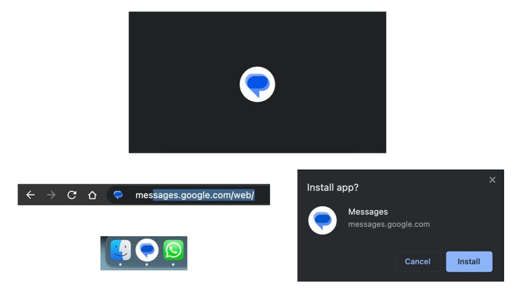 Thankfully, as spotted by 9to5Google, the update of the web version of Messages is now live. Not only is it visible when navigating to messages.google.com/web as the site’s favicon, but also when attempting to install the PWA from Chrome and on the computer’s taskbar or dock. Additionally, there’s a very brief splash page that loads when opening the app the first time or reloading the page, although 9to5 found that it only shows up if you have chosen to “Remember this computer” in the app’s settings. Also, you may need to reinstall the web app on your desktop devices for the new icon to appear.