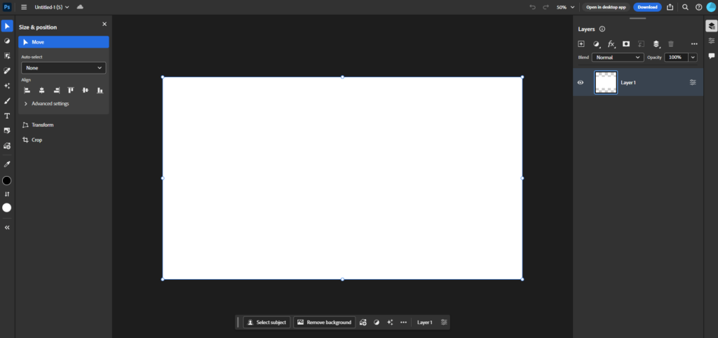 Open your Chromebook launcher by hitting the Everything key on your keyboard and type in ‘Adobe Photoshop Web‘. Alternatively, you can just click here to get into the portal for Photoshop Web. Once you create an Adobe account and sign in (and well, pay the subscription fee), you’re greeted with a familiar but sleek interface. Those already acquainted with the desktop version will find their way around easily. Simply choose the blue ‘New file’ button at the top right of the window and you’ll be brought to a screen where you can create a new ‘Default’ document and choose your size.