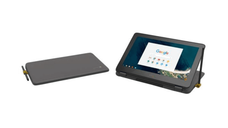 Other features of the clamshell model include an Intel Apollo Lake N3350 processor, 180-degree rotating HD camera, 4GB RAM and a retractable carrying handle for the student on the go.