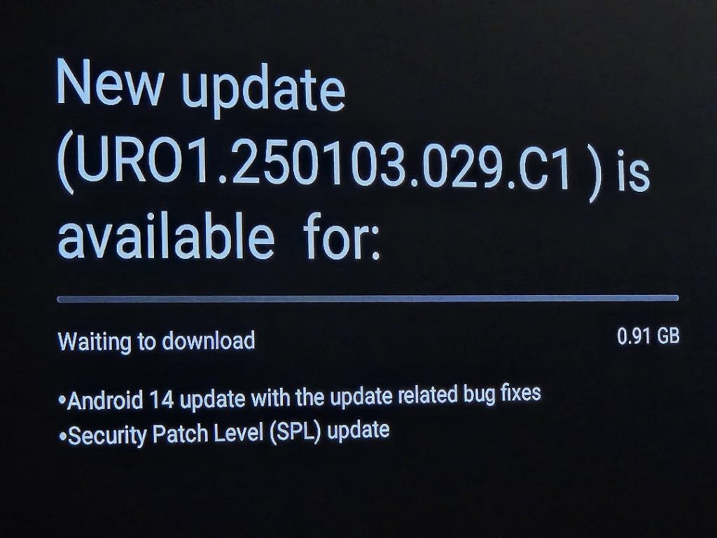 As reported over on Reddit, a new, revised Android 14 build is now rolling out as an over-the-air (OTA) update. This fix applies not only to the Onn 4K and Onn 4K Pro boxes but also appears to be heading to the older Onn Stick as well. For those with the Onn 4K Pro, the new update arrives as build number “URO1.250103.029.C1” and weighs in at a hefty 0.91 GB.