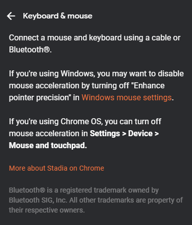 If you load up Stadia through the browser and go to connect your controller, you’ll notice an awesome new graphic at the top of the pairing menu which shows several different available input types accompanied by the following text: